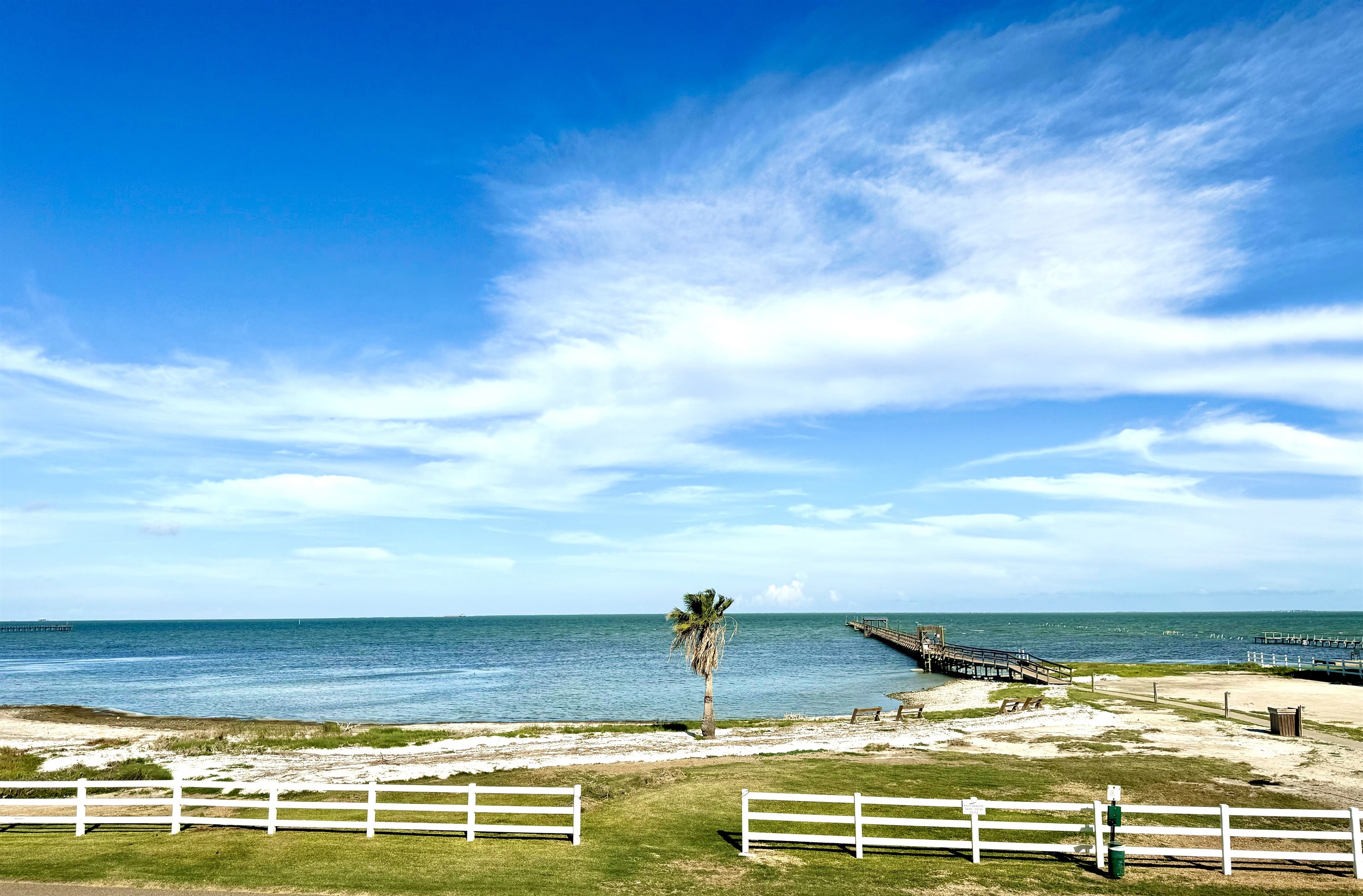Waterfront Copano Bay 3 bedroom/3 bathroom home w/ lighted fishing pier & pool table.1st floor has pool table, seating area, full bathroom, and sleeper sofa in the game room. 2nd floor is the main living area, fully equipped kitchen w/ bar seating for 6 and a dining table for 8. Primary bedroom has a king size bed, ensuite bathroom, private screened-in porch. Second bedroom has a queen size bed & third bedroom has a queen & twin bed. There is a second full bathroom on the main. In the corner of the living room, there is a desk that overlooks Copano Bay if you need a place to work.