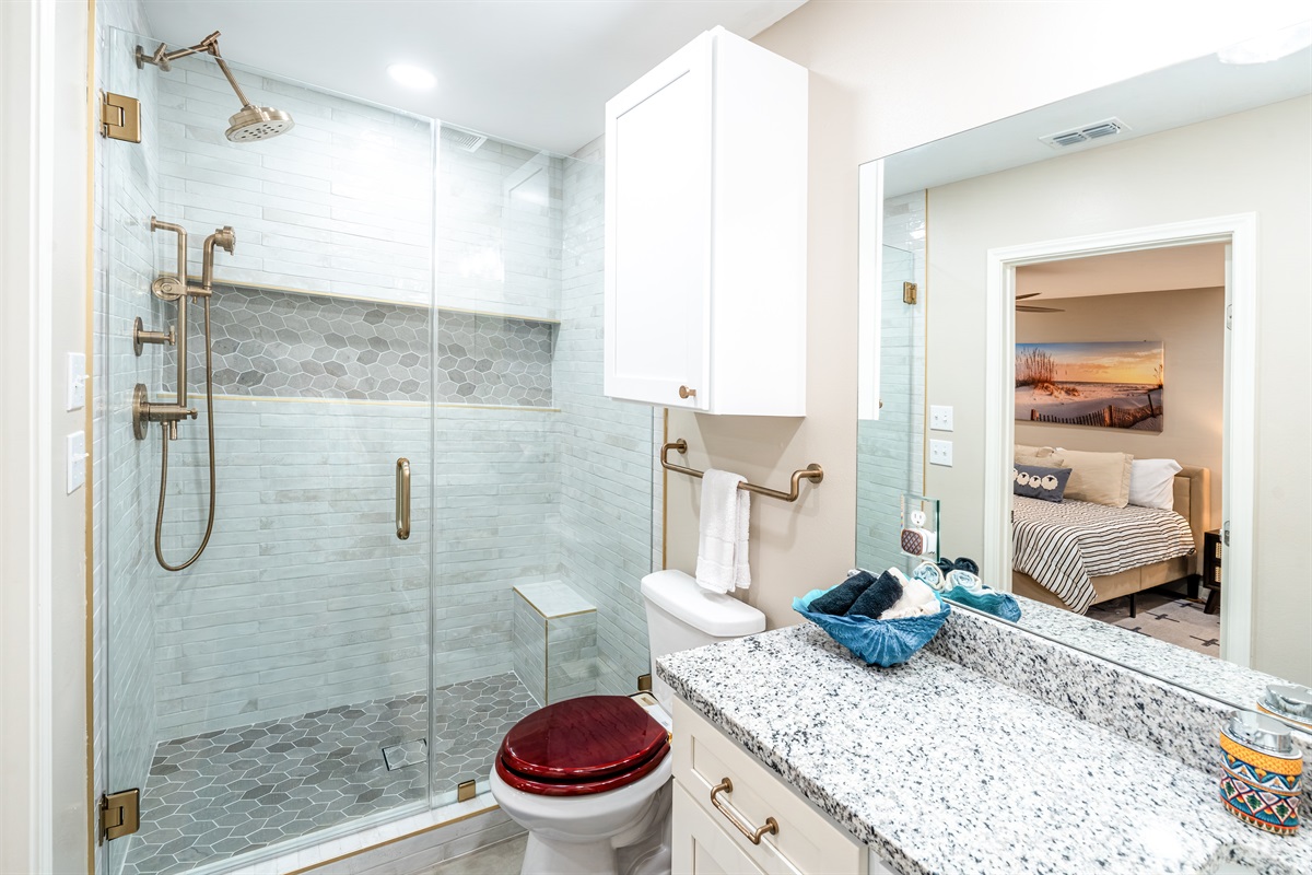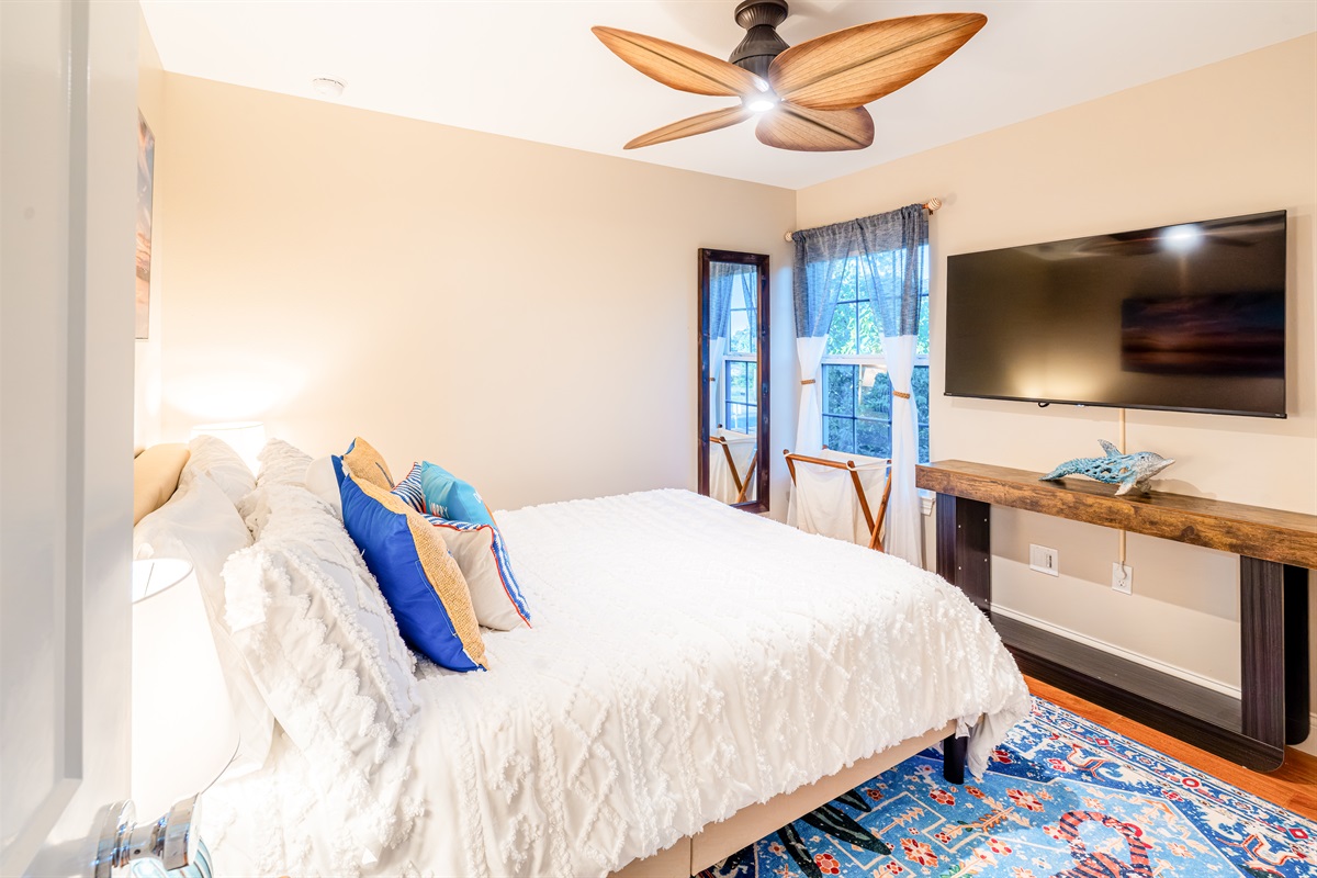 Step inside to a bright, open-concept living space and a fully stocked kitchen—complete with cast iron, baking essentials, slow cooker, air fryer, no-ice margarita maker, and more. After a day on the coast, rinse off in the outdoor shower and unwind in spacious, cozy bedrooms.