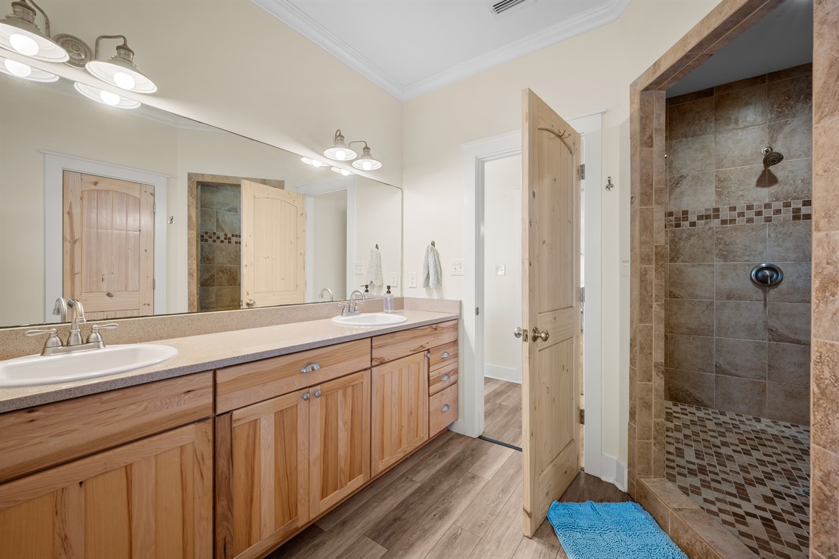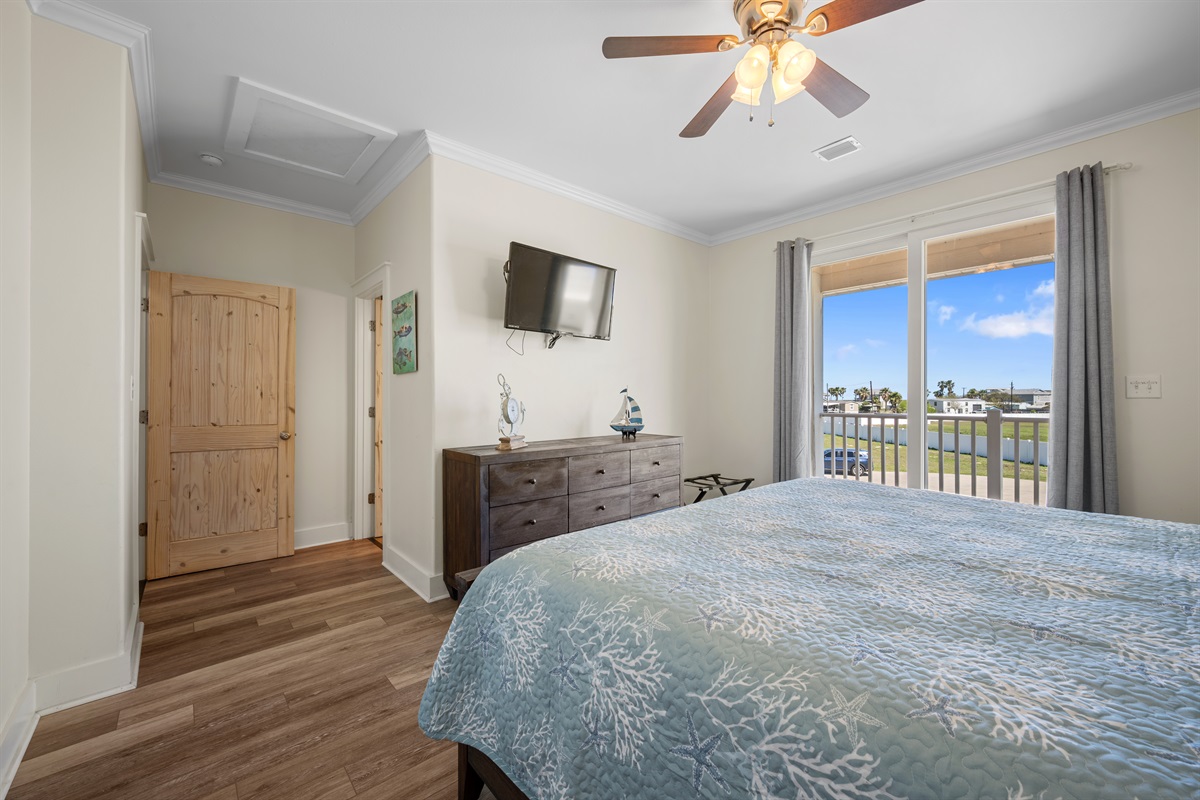 • Primary suite upstairs: King bed with private balcony and ensuite with large walk-in shower