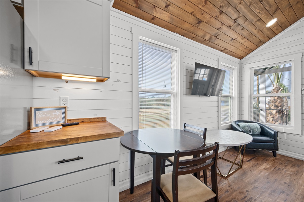 1 Bedroom • 1 Bathroom 1 Bath • Sleeps 2-4Wild Redfish is a thoughtfully designed tiny home offering a relaxed coastal stay with modern comforts and a private outdoor entertaining area. This unit is one of three separate tiny homes on the property, each rented individually and each with its own pergola, ensuring privacy and personal outdoor space.